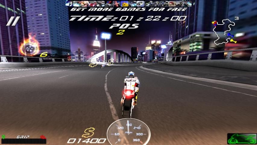 Motorbike Racing mengambil genre balap tak ada habisnya untuk tingkat yang baru dengan menambahkan modus full karir, pertama orang perspektif, grafis yang lebih baik dan kehidupan nyata dicatat sepeda terdengar. Inti dari halus balap arcade masih ada tapi di shell generasi berikutnya. Naik sepeda di jalan raya tak berujung menyalip lalu lintas, upgrade dan membeli sepeda baru untuk mengalahkan misi dalam mode karir.