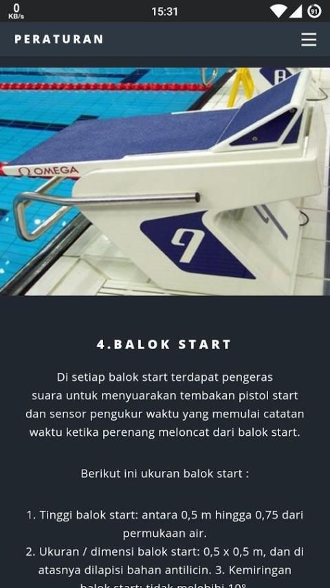 Aplikasi Olahraga Renang Berbasis Android ini memberikan penjelasan tentang Peraturan dan Teknik dalam Olahraga Renang. Sehingga aplikasi ini memberikan kemudahan untuk mengetahui Peraturan dan Teknik dalam Renang.