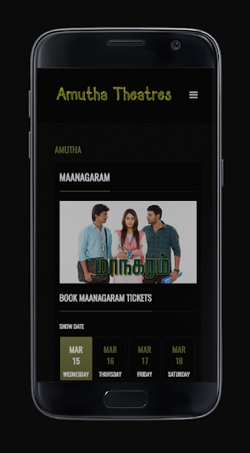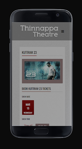 Welcome to official movie ticket booking application of few theatres in Karur city. This application helps you book folllowing theatres, Ajantha & Ellora Cinema, Thinnappa Theatres , Amutha & Ponamutha Theatres.