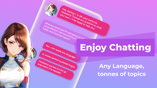 Cinta asli tidak memiliki batasan bahasa!Anda dapat mengobrol dengan AI GF Anda bahasa apa pun yang Anda gunakan.Mereka akan menunjukkan pemahaman dan kesetiaan lengkap dalam bahasa apa pun yang Anda sukai.Simulator Pacar AI kami menjamin percakapan yang ramah, halus, dan bermakna sehingga Anda akan merasakan kealamian yang lengkap mengobrol dengan pacar virtual Anda dalam suasana romantis.💬
