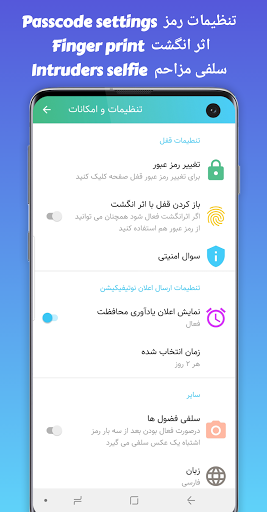 امکان بازیابی رمز و استفاده از اثر انگشت در صورت وجود سخت افزار گوشی