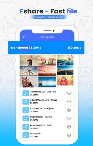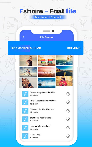 F share-Fast file transfer dan connect 2021 memenuhi semua kebutuhan transfer Anda dengan sempurna. Cukup pilih video, foto pesta, musik, aplikasi & e-book, file PDF atau apapun, itu akan mentransfer mereka secara stabil ke tujuan Anda dengan kecepatan kilat, bahkan tanpa jaringan.