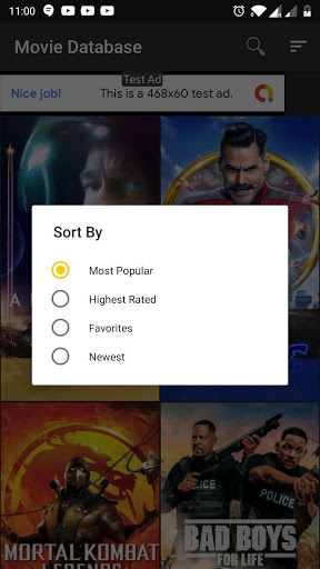 The movie database app is your movie guide for newest, most popular or highest rated movies. You can sort the movies list based on Most popular, Highest Rated or Newest movies.