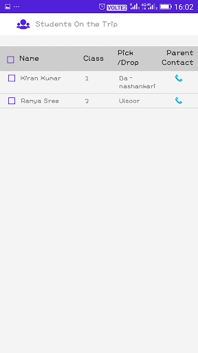 - View list of students in bus with stops