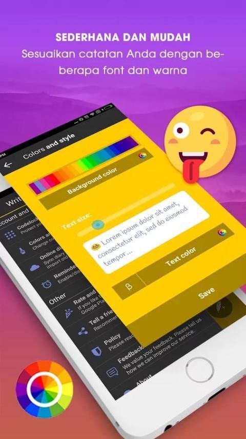 Menulis buku harian adalah kebiasaan yang membantu Anda untuk menangkap pikiran dan perasaan Anda pada saat itu, jadi kami selalu mencoba yang terbaik untuk membuat Anda menulis yang terbaik. Anda dapat menyesuaikan warna latar belakang, warna teks, dan ukuran teks.