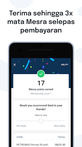 • Tambah nilai Dompet Setel anda secara tunai dengan membeli baucar di kaunter stesen PETRONAS dan perbankan dalam talian.