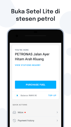 • Gunakan Dompet Setel untuk bayar petrol dari kenderaan anda.