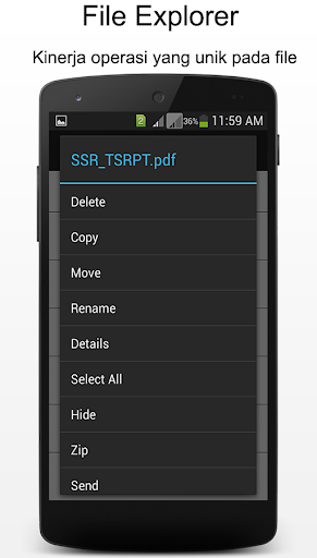 Mengoperasikan file Copy, Paste, Cut / Move, Buat, Hapus, Ubah nama, detail, Share / Kirim, pencarian di telepon.
