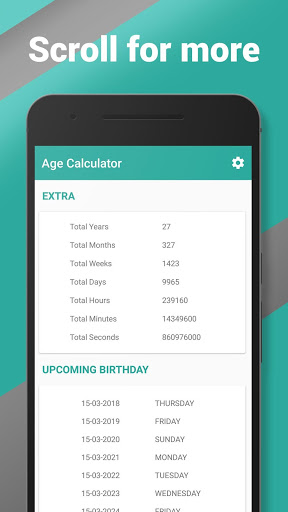 Age Calculator is very easy to use and has beautiful Design. using this handy age calculator you can calculate Chronological age of your baby, family and everyone.