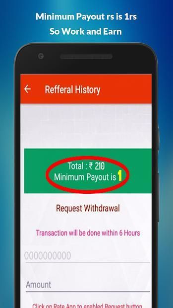 Anda Dapat Menarik atau Menebus Penghasilan Anda Melalui Paytm. Pembayaran Anda Akan Mengirim Anda Ke Dalam 6 Jam Jam. Ketika Penghasilan Anda Mencapai 25+ Rupee. Anda Dapat Mengirim Permintaan Penarikan Atau Menukarkan Dompet Pembayaran Anda.