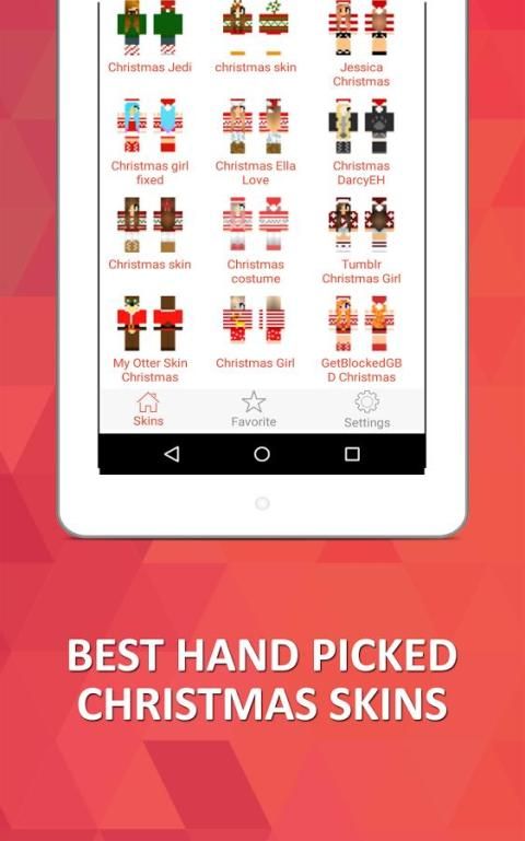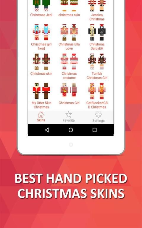 You can change your skin to one of the best christmas skins anytime you want. Choose from hundreds of the best hand-picked christmas skins. This app does not contain thousands of meaningless skins, but rather it contains the best, hand-picked skins for you to quickly go over and choose what is best for you.