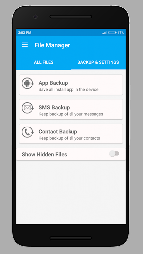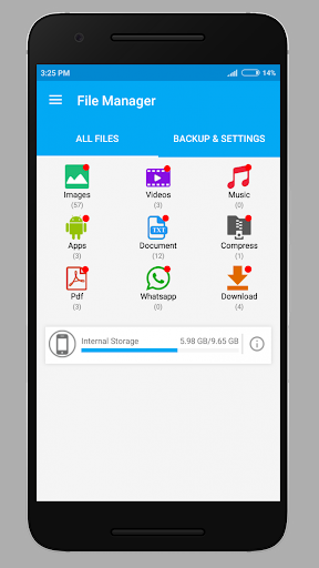This App allows you to copy, move, rename, delete, Create folder and share files. Also you can easily see the location of each category file and the SD card usage.