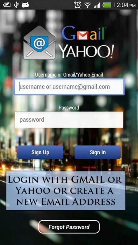 You can either create a new email account or login using your Gmail or Yahoo Mail account.