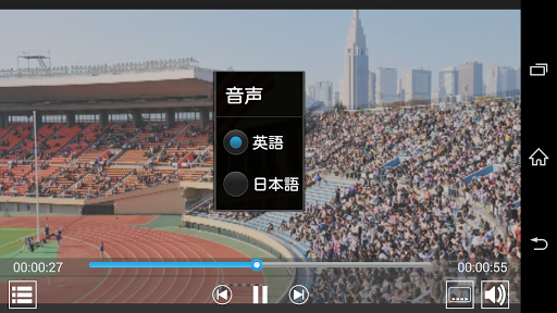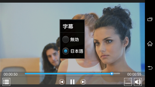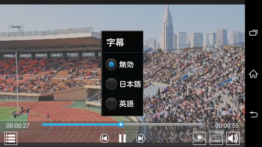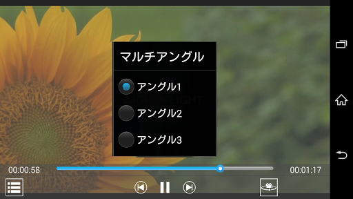 再生中にワンタッチで立ち上がるツールバーからは再生、一時停止、ルートメニューの表示に加え、字幕、音声、マルチアングル、チャプターの切り替えができます。
