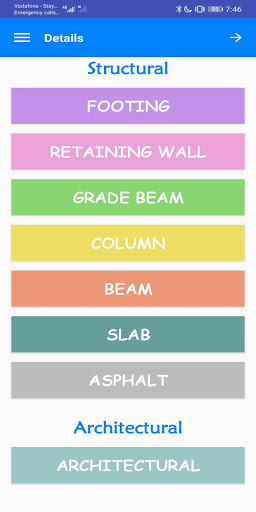 Aplikasi ini berisi inventaris yang komprehensif dari item-item berikut: Kaki - Kolom - Kolom -Beams - Slab - Aspal - Selesai.