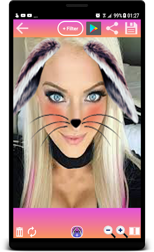 Snap Face Editor App makes it possible to design your face on Selfies like a cute Snap Dog Face or Cat Face for free! You receive daily new Snap Filter Sticker by just waiting and using the app. Feel free to leave helpful feedbacks for improving the app.