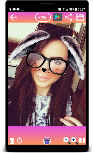 Snap Face Filter & Dog Face Sticker like Dog Snaut, Cat & Bunny Ears, Deer Ears, Glasses & Eyelashes. Add fantastic Face Effects and Cute Sticker to your Photo and also apply Snap Filter.