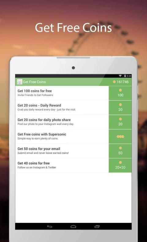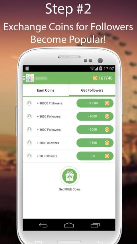 Get coins and exchange them for real Instagram followers.