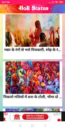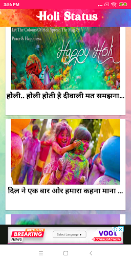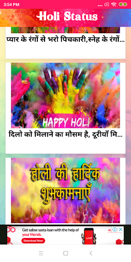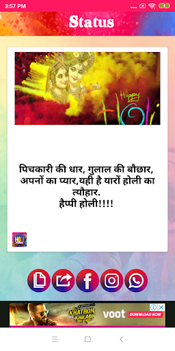 Status Holi |Holi SMS |Holi Shayari Aplikasi terbaik untuk status Holi WhatsApp.Aplikasi telah membahas semua status HOLI untuk semua.