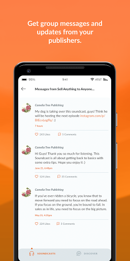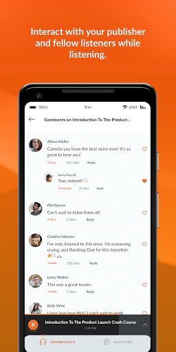 * Berinteraksi dengan Pencipta program audio Anda dan pendengar lainnya melalui komentar.