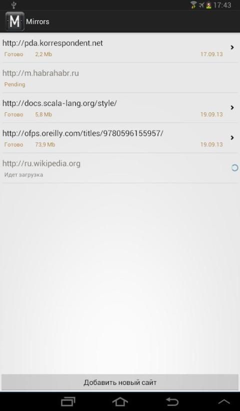 Aplikasi ini memungkinkan Anda untuk men-download situs web favorit Anda (dengan menciptakan 'Cermin' lokal) dan membukanya saat Anda sedang offline dalam hal akses Internet mahal atau langka.