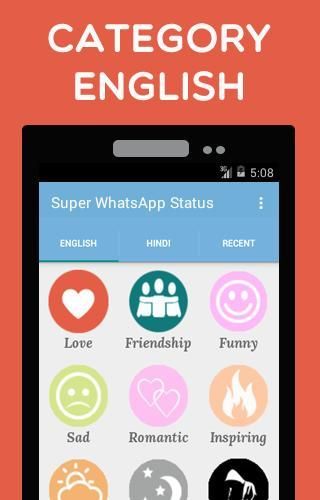 "Super WhatsApp Status" is the best status/SMS collection App with status widget. English Status & Hindi Status are Included.