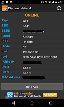 This app shows importance information of network on your phone. The information include :