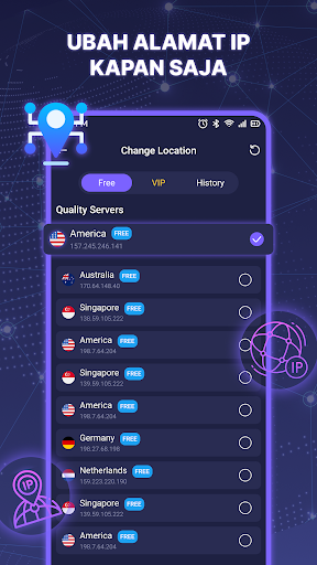 Aplikasi ini memungkinkan Anda untuk mengubah alamat IP Anda dengan cepat dan mudah, memberikan tingkat anonimitas online yang sangat baik. Ini memberikan perlindungan lebih lanjut secara online karena membuat lebih sulit bagi hacker dan pelaku jahat lainnya untuk melacak aktivitas internet Anda.