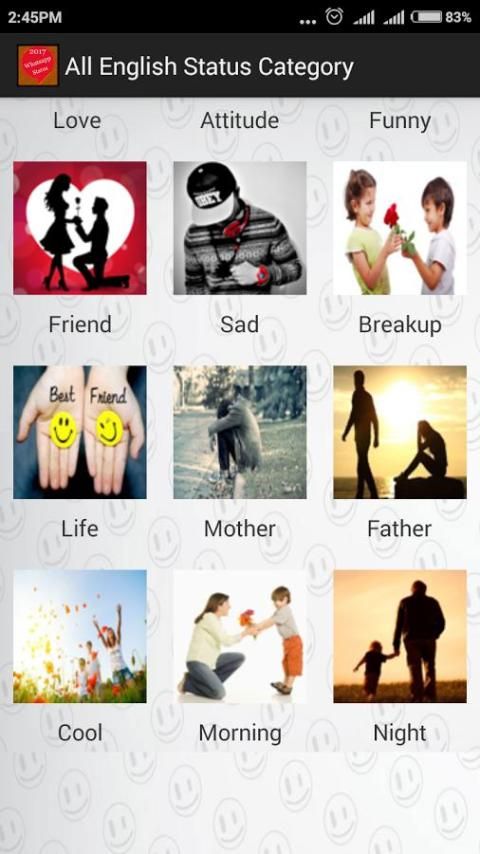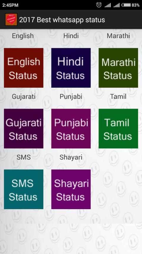 Harian Status Baru Whatsapp adalah aplikasi Untuk Best Collection of Status Whatsapp Dalam bahasa Inggris, Hindi, Marathi, Gujarati, Punjabi, Tamil, SMS, status Tersedia Shayari ..