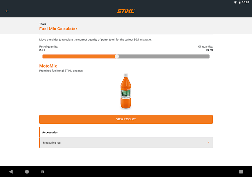 The free STIHL app for Smartphones and Tablets is your universal tool on the go. Benefit from valuable expertise and services relating to the STIHL product range. With practical tools such as the Mixture Calculator for finding the perfect ratio of petrol to oil, and clear, step-by-step instructions, it will help you handle and maintain your STIHL products perfectly. Save your products under “My STIHL” to make sure you always have an overview of your devices and accessories.