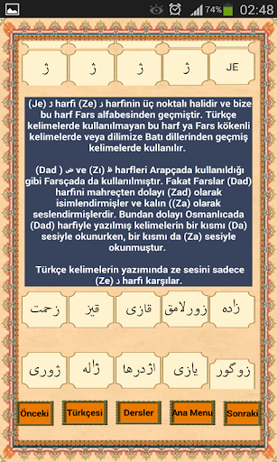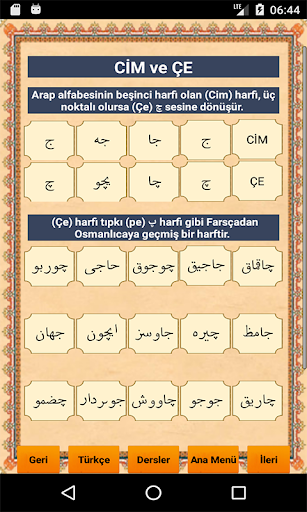 Türkçesi karşılığı tek tuşla karşınıza çıkacak istediğiniz an yanlış ya da doğrularınızı kontrol edebileceksiniz. Uygulamamızda tüm harfler tek tek incelenmiş, her harf için onlarca örnek kelimeler verilmiş, Türkçede kullandığımız ekler, ismin halleri, bağlaçlar, yapım ve çekim ekleri kısaca dilbilgisi konuları detaylıca anlatılıp örnekler verilmiştir. Osmanlıca Öğreniyorum programımızın içerisinde ayrıca, Kuran Elif Ba sı, Namaz Sureleri, Esmaül Hüsna, Dualar, Salavatlar gibi pek çok uygulamamıza da bağlantılar bulabilirsiniz.