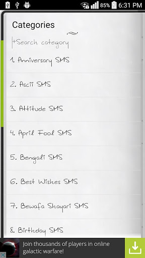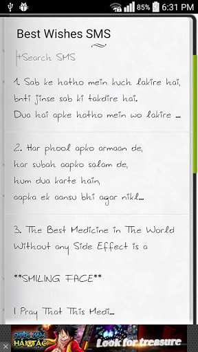 Completely Offline & FREE of most popular and most wanted apps!! Over 10,000 collection of text messages, forwards, quotes & top jokes in more than 50 categories of sms for android phones!! Largest SMS Collection in smallest app-size!