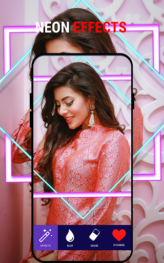 Dalam efek snap-camera selfie & aplikasi kamera gratis 2021, efek neon memberi Anda pengalaman pengeditan terbaik. Oleskan lampu neon pada foto Anda, tambahkan stiker neon, neon spiral, tambahkan teks neon bergaya dan ambil perhatian semua orang. Untuk mendapatkan cahaya instan pada foto Anda semua yang Anda butuhkan adalah membuka editor dan menambahkan efek cahaya di atasnya.