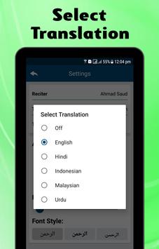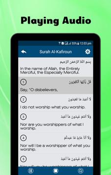 • Play and Stop choices are offered to start and pause the recitation anytime.