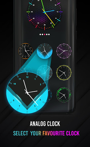 Klik ikon jam analog di aplikasi Smart Neon Voice Clock kemudian pilih jam analog untuk saver layar ponsel Anda. Speak Voice Clock App memiliki 30 plus jam analog yang indah dengan kombinasi warna yang indah. Gunakan jam analog gratis dengan desain wajah yang berbeda dan jam yang menarik.