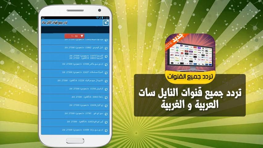 Application Nilesat channels frequencies 2016 you can watch all the channels Nilesat frequencies, BNP Sport MBC channels Al Jazeera Arabic songs all sports channels Nilesat frequency channels in 2016 directly on television and also watch Moroccan channels directly, encrypted frequency channels.
