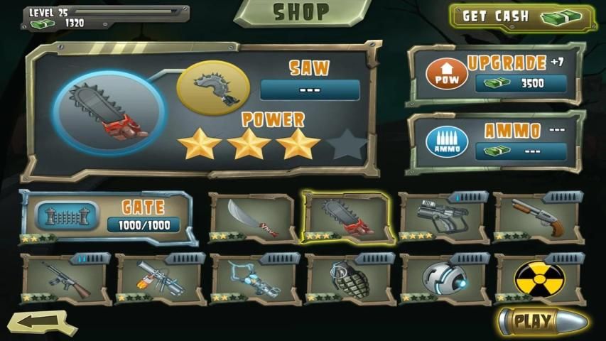 - Membuat penggunaan beberapa senjata yang akan membantu Anda membunuh zombie, klik pada senjata bom atom khusus untuk membuat kerusakan menghancurkan besar.