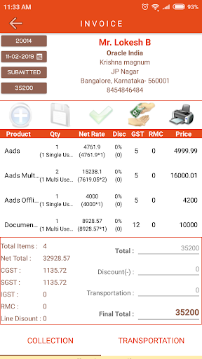 You can generate Purchase/Sales Estimates/Invoices, track Payment and collections and print them all on your mobile or Tab and "On the Go".