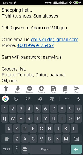 Easy add edit note. Lite and fast app. Size is less than 200kb Copy note, zoom note features added