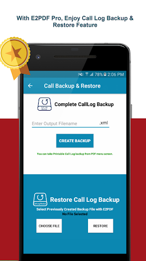 log panggilan dapat dibuat secara efisien dan memulihkan dengan e2pdf pro. Cadangkan dibuat dalam format XML. Selain itu, pengguna dapat membuat cadangan dalam format PDF yang dirancang dengan baik. Dengan fitur cadangan PDF, Anda dapat memilih untuk mengambil cadangan panggilan yang dihubungi, diterima, tidak terjawab atau mengambil log panggilan lengkap dan dapat menggunakannya sesuai kebutuhan Anda.