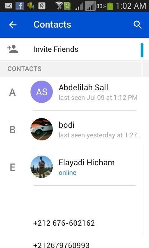 يمكنك ارسال الرسائل والصور والفديو والملفات من اي نوع (doc, zip, mp3 …الخ) إلى الاشخاص الموجودين لديك في قائمة الاتصال