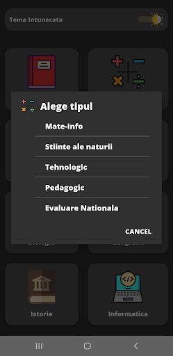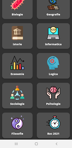 Tes berasal dari pelayanan dan 20 untuk setiap BAC dan 40 hal untuk Rumania dan 40 dalam matematika untuk evaluasi nasional.Juga dalam aplikasi Anda akan menemukan hitungan mundur apa yang akan ditampilkan selama Anda memiliki hingga ujian.Anda memiliki 2 tema: cerah dan gelap .spor ke tes!