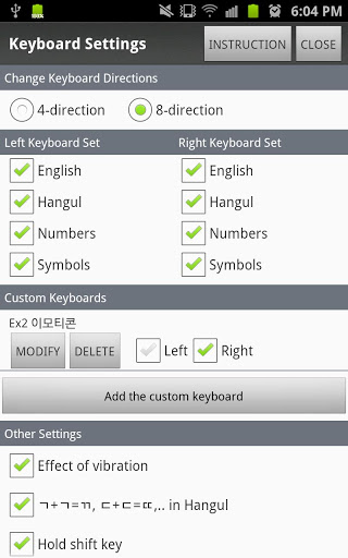 7) Now, back to the input mode, and you can choice your custom keyboard by touching the input panel. If you touch the input panel, you can show the key map.