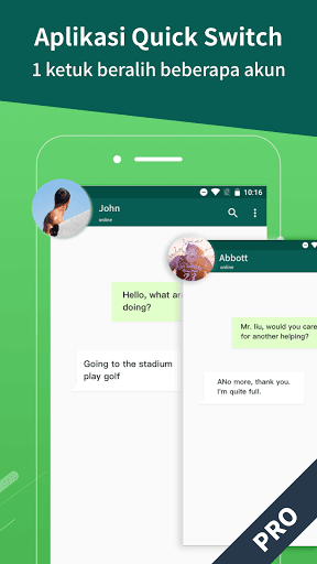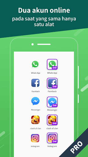 Satu ketuk untuk mengkloning aplikasi, dengan mudah menambahkan beberapa akun untuk semua aplikasi sosial, data antara akun yang dikloning dan akun utama disimpan secara terpisah dan pesan tidak saling mengganggu.