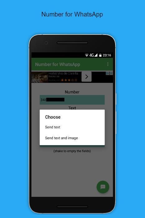 Jumlah untuk WhatsApp memungkinkan kita untuk mengirim pesan teks saja serta pesan dengan gambar dari Galeri.