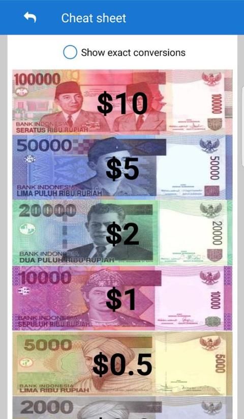 diberikan nilai tukar Anda itu menunjukkan contekan berguna dengan masing-masing catatan bank Indonesia bersama-sama dengan setara dengan mata uang rumah Anda.