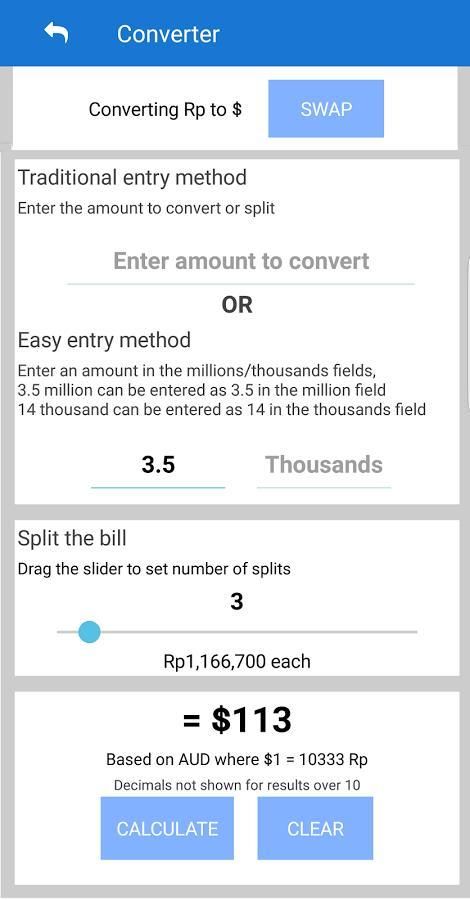 Converter now calculates both ways, to and from Rupiah