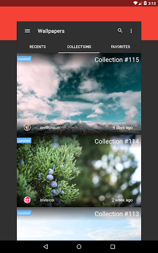 ✔ View curated collections of wallpapers based on title and scenery, curated by the authors of the website or by famous users.
