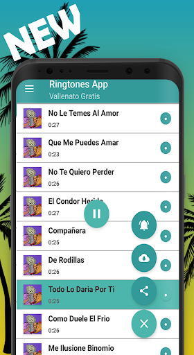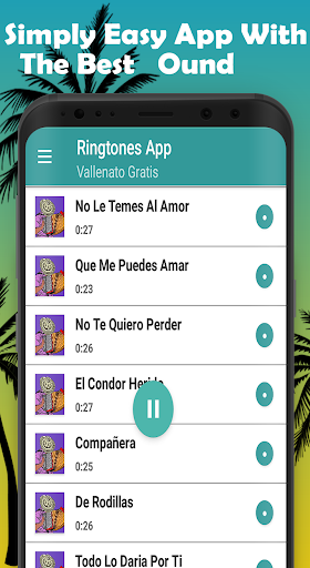 new interpreted by: La Decision Vallenata, Silvestre Dangond, Peter Manjarres, Jorge Celedon, Nelson Velasquez, Kaleth Morales, Felipe Pelaez, Alfredo Gutierrez, Patricia Teheran, Martin Elias, Diomedes Diaz, Rafael Orozco, Los Inquietos, Binomio de Oro De America, The little devils, Giants of Vallenato, Miguel Morales, Luis Mateus, The Chiches del Vallenato, Farid Ortiz, The Ambassadors, Daniel Celedon, Embrujo Vallenato, etc. Vallenatos free to download all the ringtones with the best vallenatos with this App is simply easy to use, enjoy the favorite rhythm free ringtones vallenato for calls vallenato songs to set the alarm with vallenato music to download is your choice that make you sastifecho establish the message sound with ringtones for free vallenatos if you like the vallenatos tunes for free share is now a free app and selects vallenato music ringtones.
