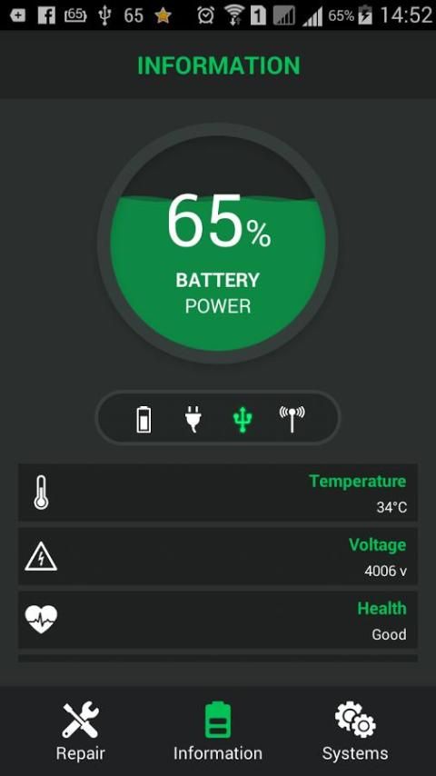 - Show information of your battery to show the condition (voltage, status, health, connection type or technology)